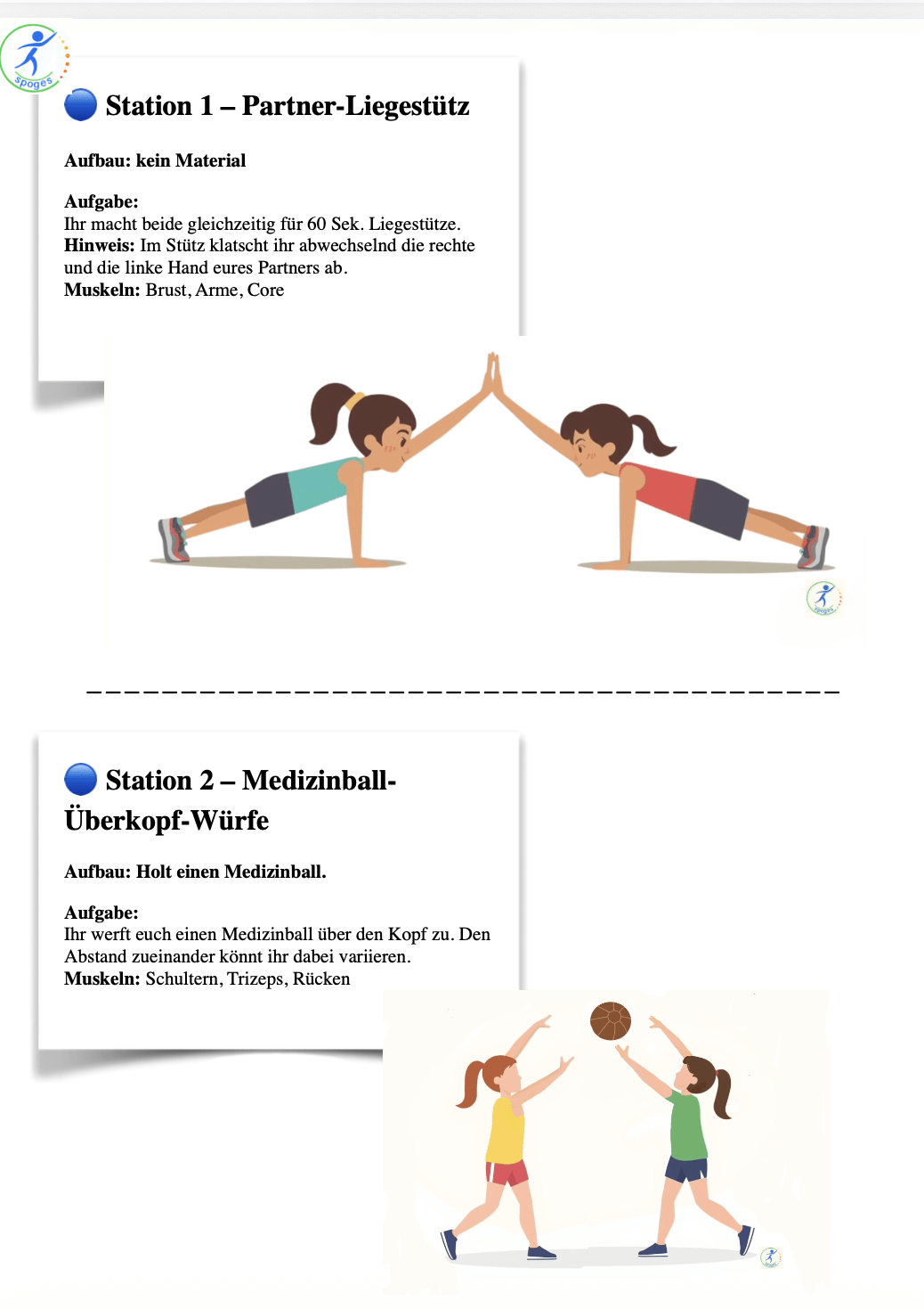 Ob als Stationstraining, Einstieg ins Thema Fitness oder als wiederkehrendes Modul im Unterricht: Dieser Zirkel bietet vielfältige Übungen zur Kräftigung von Oberkörper, Rumpf und Unterkörper, die ohne großen Materialaufwand durchgeführt werden können. Alle Stationen sind so gestaltet, dass sie ideal in Partnerarbeit funktionieren – für gegenseitige Unterstützung, Feedback und einen extra Motivationsschub.